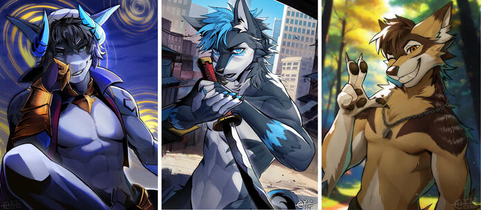 A 1500x500px bust drawing of your character. You may choose an expression and a pose! Simple backgrounds are free of charge.